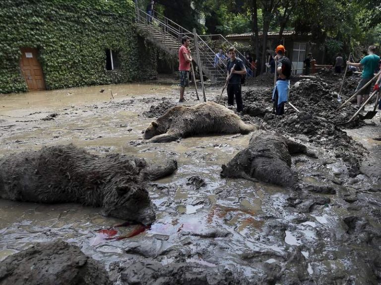 Home Dead animals lie on the ground at the zoo in Tbilisi Dead animals lie on the ground at the zoo in Tbilisi by Timothy Bertrand 11 years ago11 years ago Dead bears following the flooding disaster in Georgia’s capitol. (REUTERS/David Mdzinarishvili)